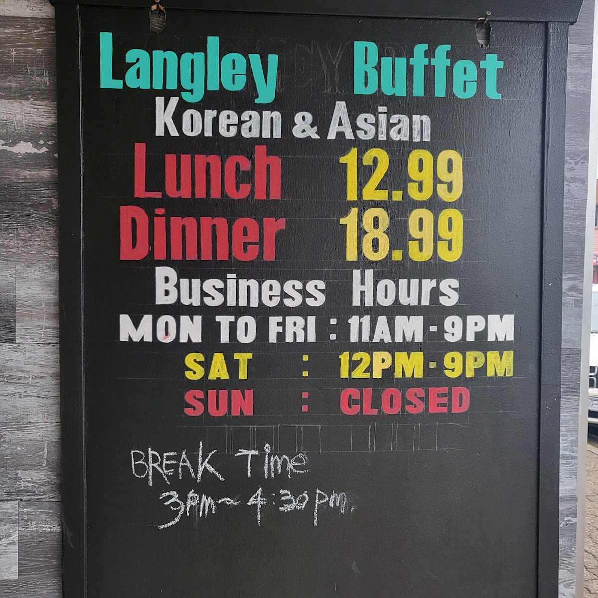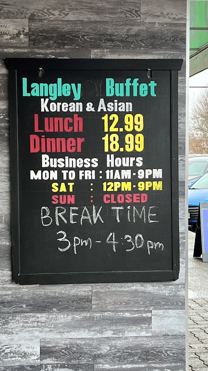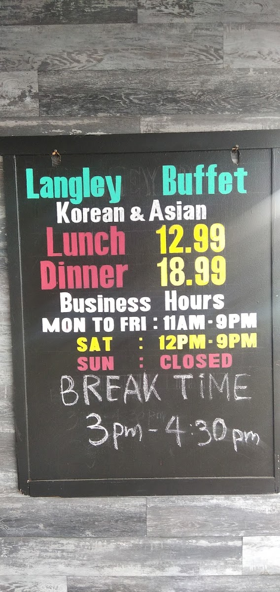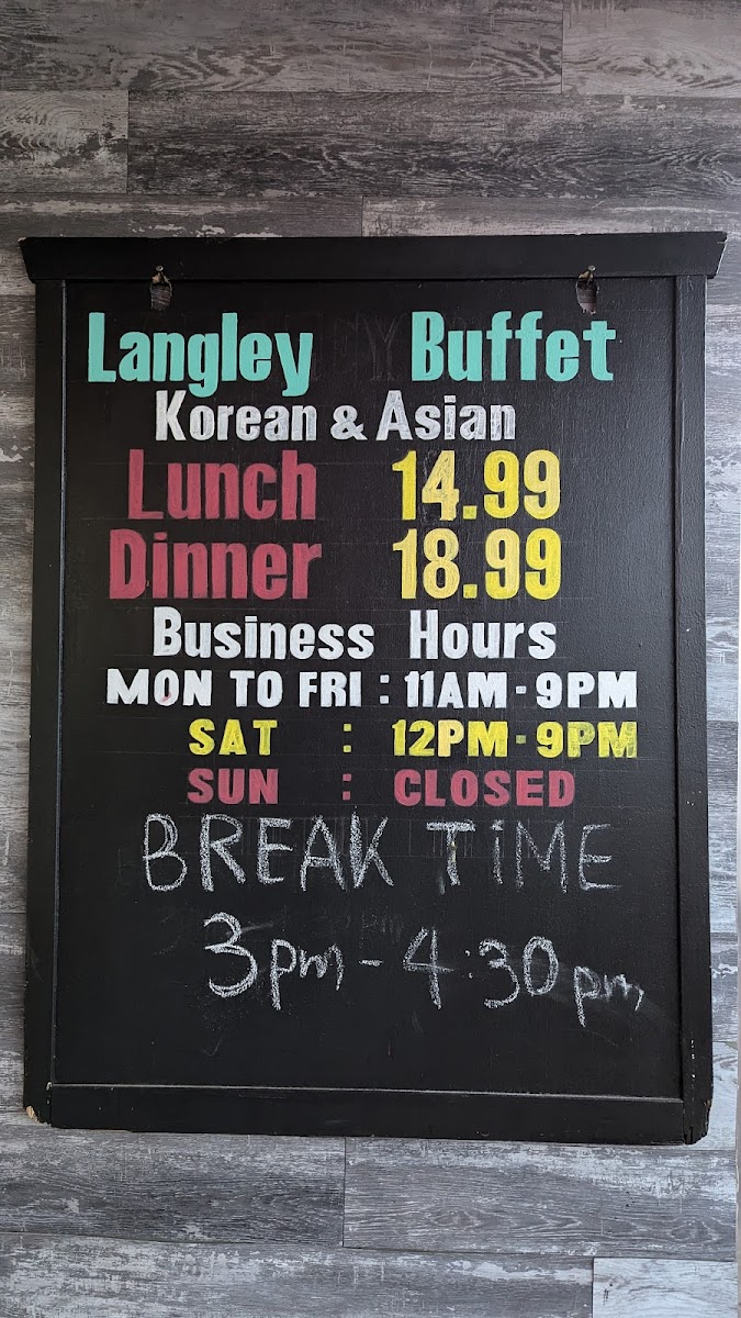 Langley Buffet Restaurant Menu